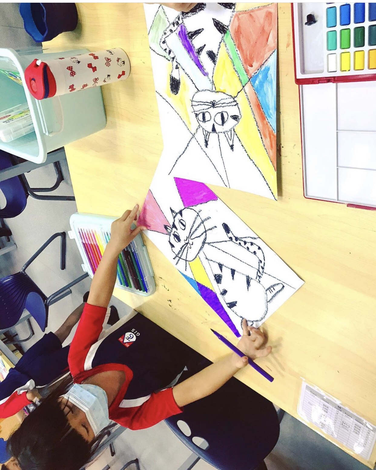 Students learned about Austrian Artist Friedensreich Hundertwasser. They used his harmonious landscapes as inspiration to create their own paintings. Mixed media used were: oil pastels, watercolors, and colored construction paper. Students were encouraged to use swirl lines, and bright colors to represent Hundertwasser eccentric personality. They nailed it 🎯 ❤️🎨